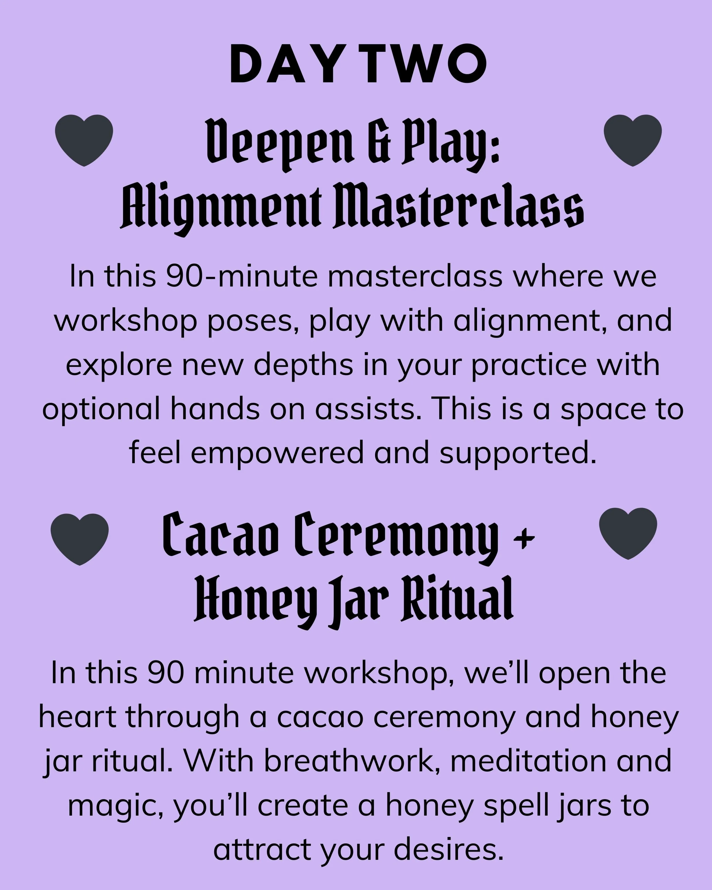 🖤 Two Strong Flows — Energizing, challenging, and intentionally crafted to help you deepen your practice while still feeling grounded and nourished. Expect movement that builds heat, strength, and confidence, all set to moody, alt playlists that hit straight to the soul.